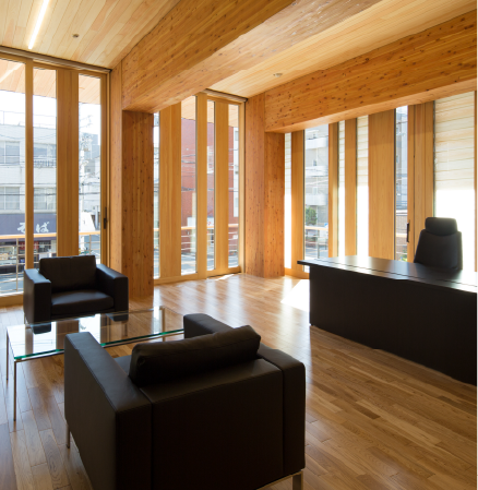 木の香り漂う、日本初の耐火木造オフィスビルで仕事ができます。数々の賞を受賞した有名な建物です。アクセスも便利です。